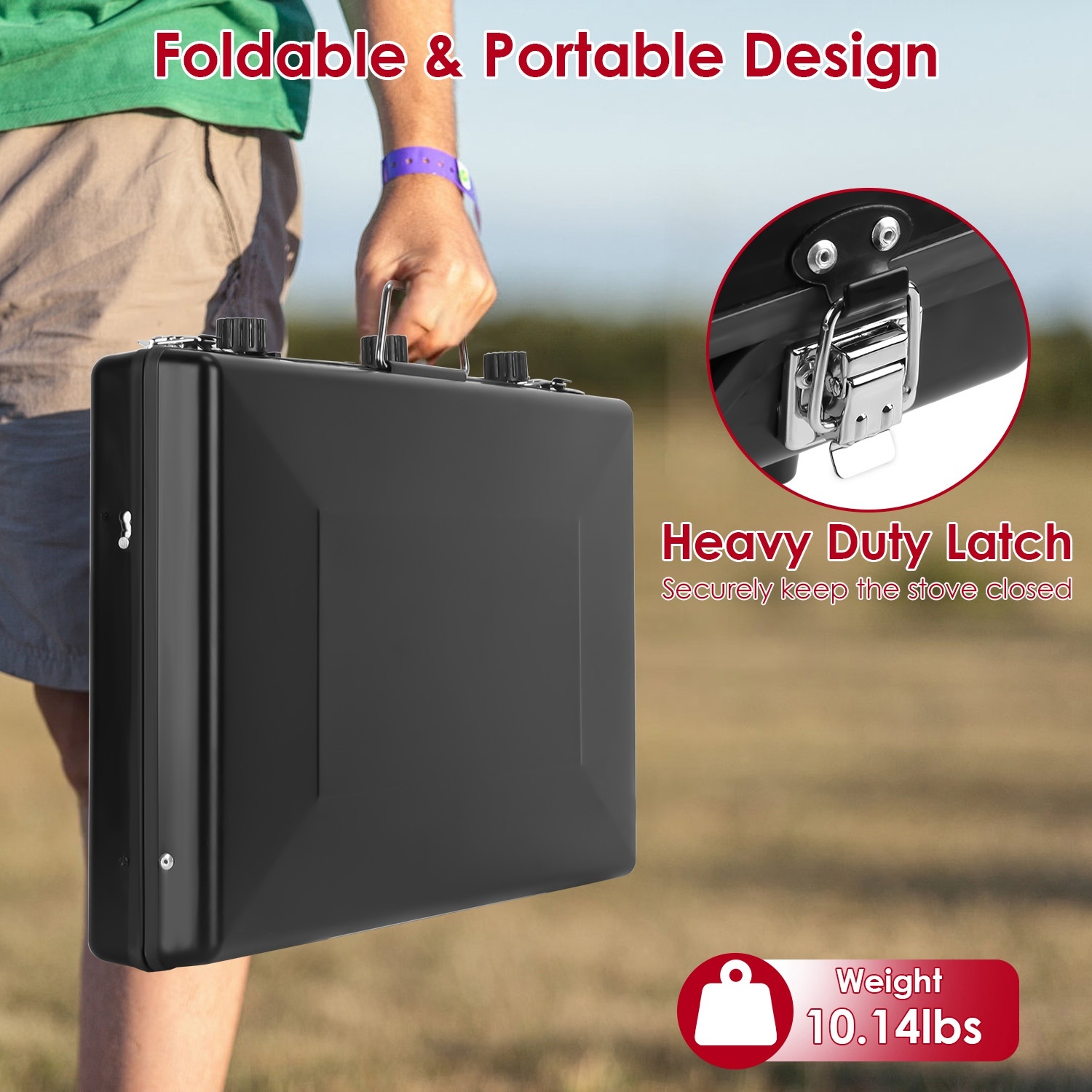 - *Foldable & Portable Design*: With the folding size of 22.44*11.81*3.15in,our foldable camping stove is easy to store in your car trunk,utility room,cabinet,won’t occupy much space. Convenient handle makes transport and carry effortless.